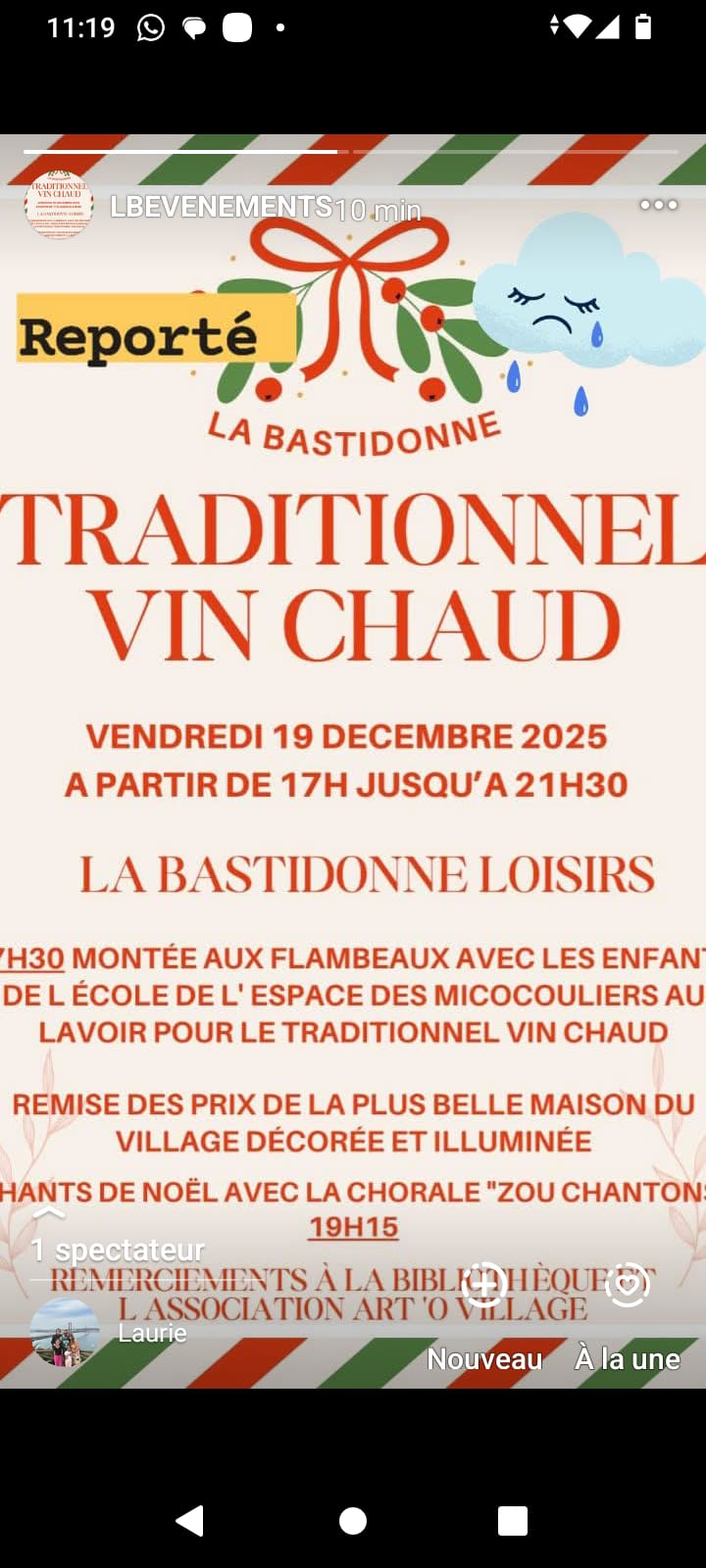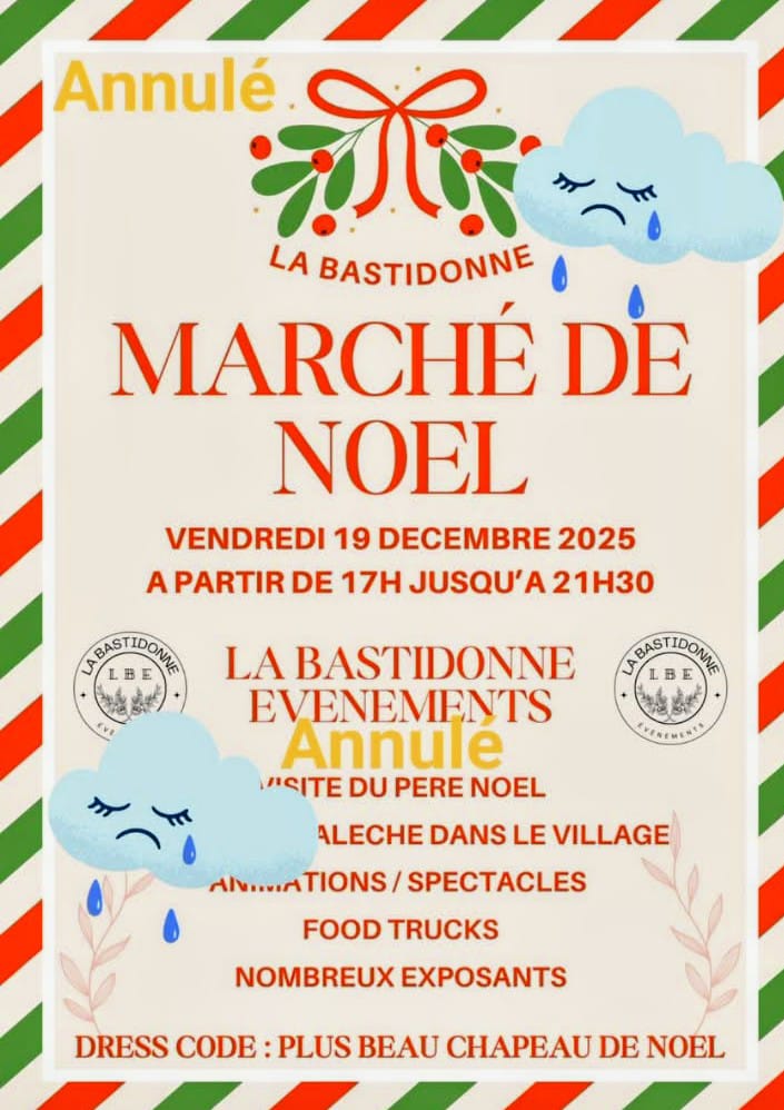 Notez aussi le traditionnel Vin Chaud au Lavoir organisé par La Bastidonne Loisirs le vendredi 19 décembre rendez-vous avec les enfants espace les micocouliers (derrière la mairie) à la sortie de l’école défilé aux flambeaux jusqu’au lavoir, chorale dans les rues et remise des prix des plus belles maisons décorées et illuminées dans le village, Et vous pourrez profiter en même temps du marché de Noël organisé par La Bastidonne Evènements (programme à venir de cette merveilleuse soirée pour fêter le dernier jour d’école et les fêtes de Noël tant attendus par les enfants et aussi… les grands.