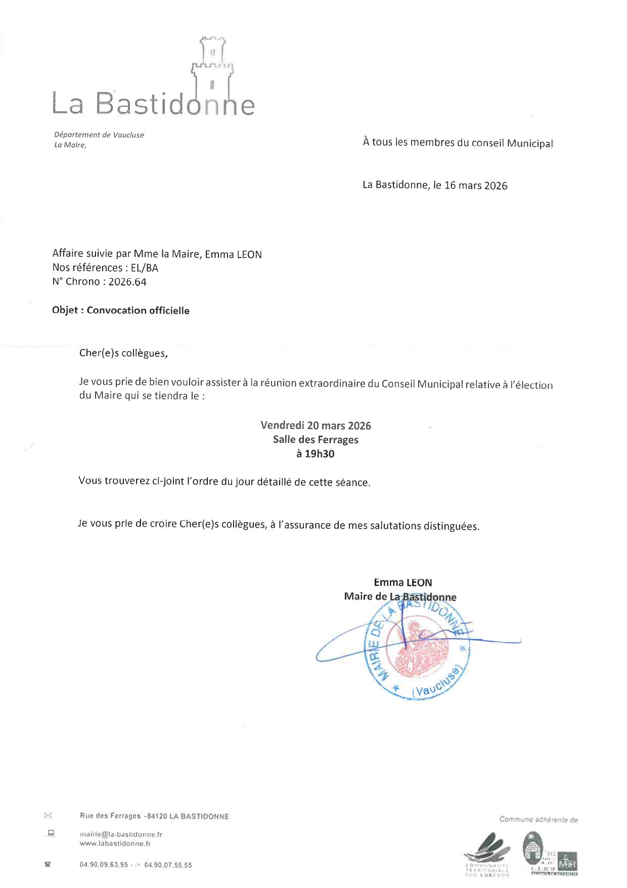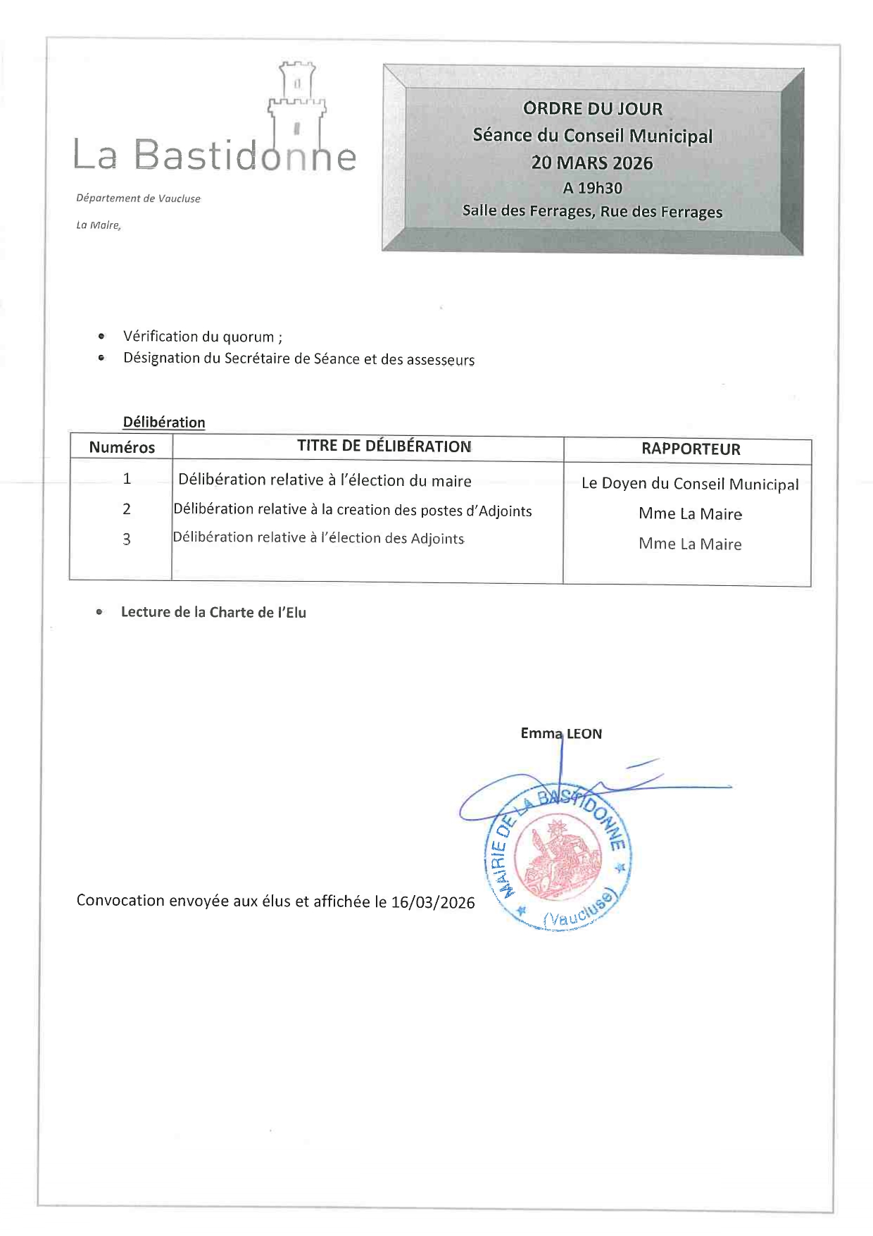 - Madame LEON Emma – Maire